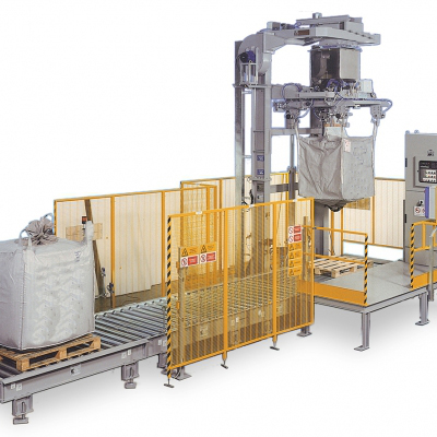 升降(jiang)結構沿垂直方向(xiang)上下移動,能使用(yong)不同規格的大袋(dài),充分🏃♂️體現多功能(neng)的特點(大袋高度(du)自900到1800mm不等)。該設備(bèi)可附加的選項🌈有(yǒu)托盤自動輥道輸(shu)送和空托盤自動(dòng)倉庫裝置。生産速(sù)度可達每小時50個(gè)大袋。